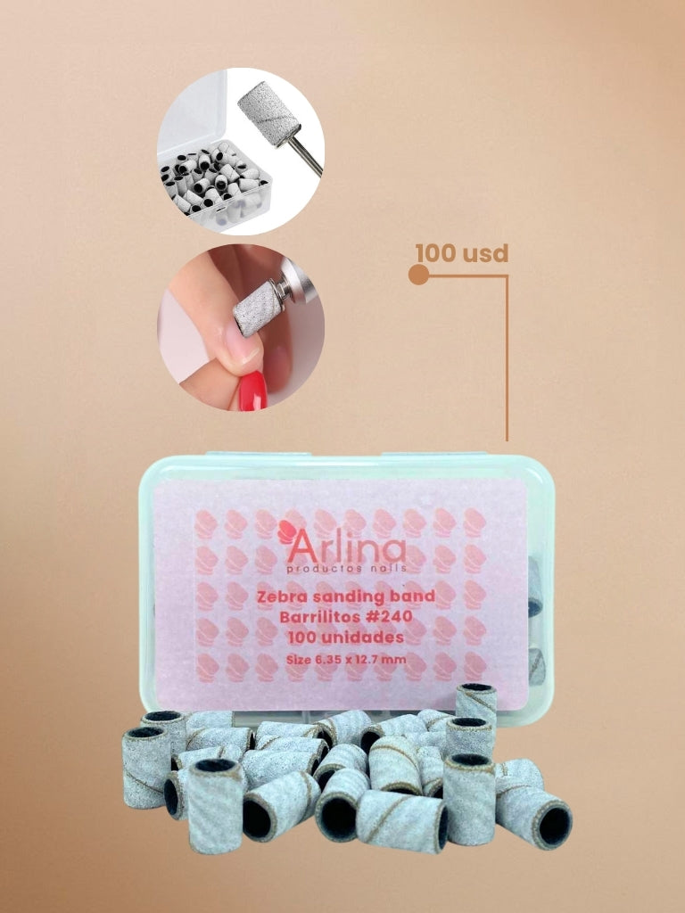Banda de lijado de grano fino ideal para el cuidado y mantenimiento de uñas artificiales.